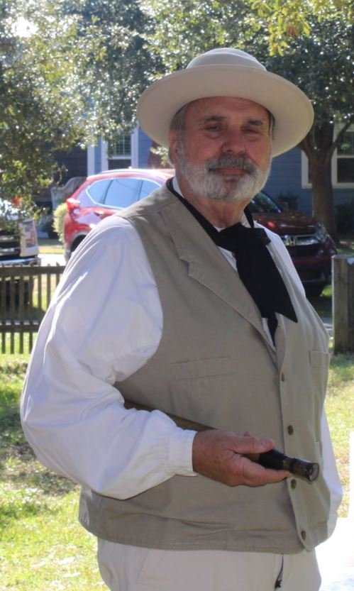 Several thrilling nautical stories were told. Charles Christianson portrayed a reporter, and told the story of an 1853 storm that took the lives of Smithville’s Eveline Everitt and her husband Major George Taylor, U.S. Army, when they were swept from the deck of the steamer SAN FRANCISCO. Thomas W. Brinkman (Joe Loughlin) who was portrayed by his great-grandson, was a blockade runner. He piloted a ship that was carrying Confederate spy Rose Greenhow to Wilmington. The ship ran aground and Greenhow drowned while trying to flee the Union forces. Capt. James Henry “Sonny” Dosher (Travis Gilbert) fought for the Confederacy and then became the lighthouse keeper for Bald Head Island, a position he held for more than thirty years. And Tim Terman told the story of Catalino Tingzon who died in 1942 when the oil tanker SS John D Gill was torpedoed off shore of Southport by a Nazi uboat.