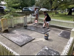 In September 2021, SHS member Dawn Taylor of Carved in Stone Cemetery Preservation Services provided a fun and interesting class for SHS members on the proper care and cleaning of cemetery gravestones. The class which took place in the Old Smithville Burying Ground was well-attended and the students cleaned the Howe and Smith monuments as a class project.