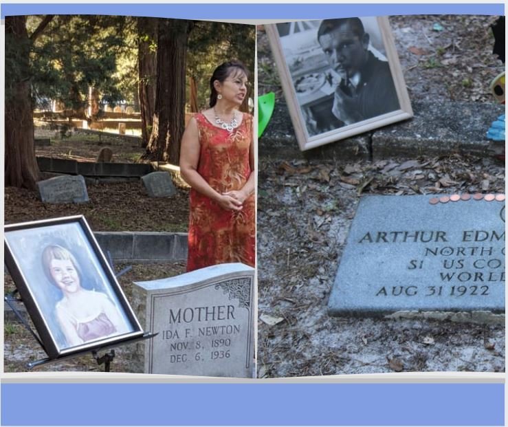Juli Newton telling family stories about her father Art Newton, Southport’s first commercial artist and photographer.